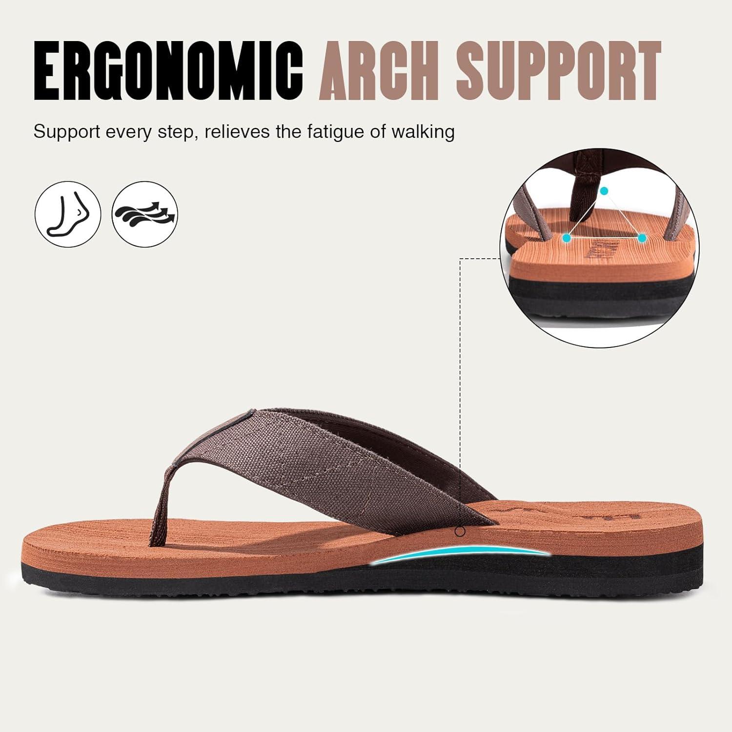 FITORY Men’s Flip-Flops, Thongs Sandals Comfort Slippers for Beach(Reddish Brown)