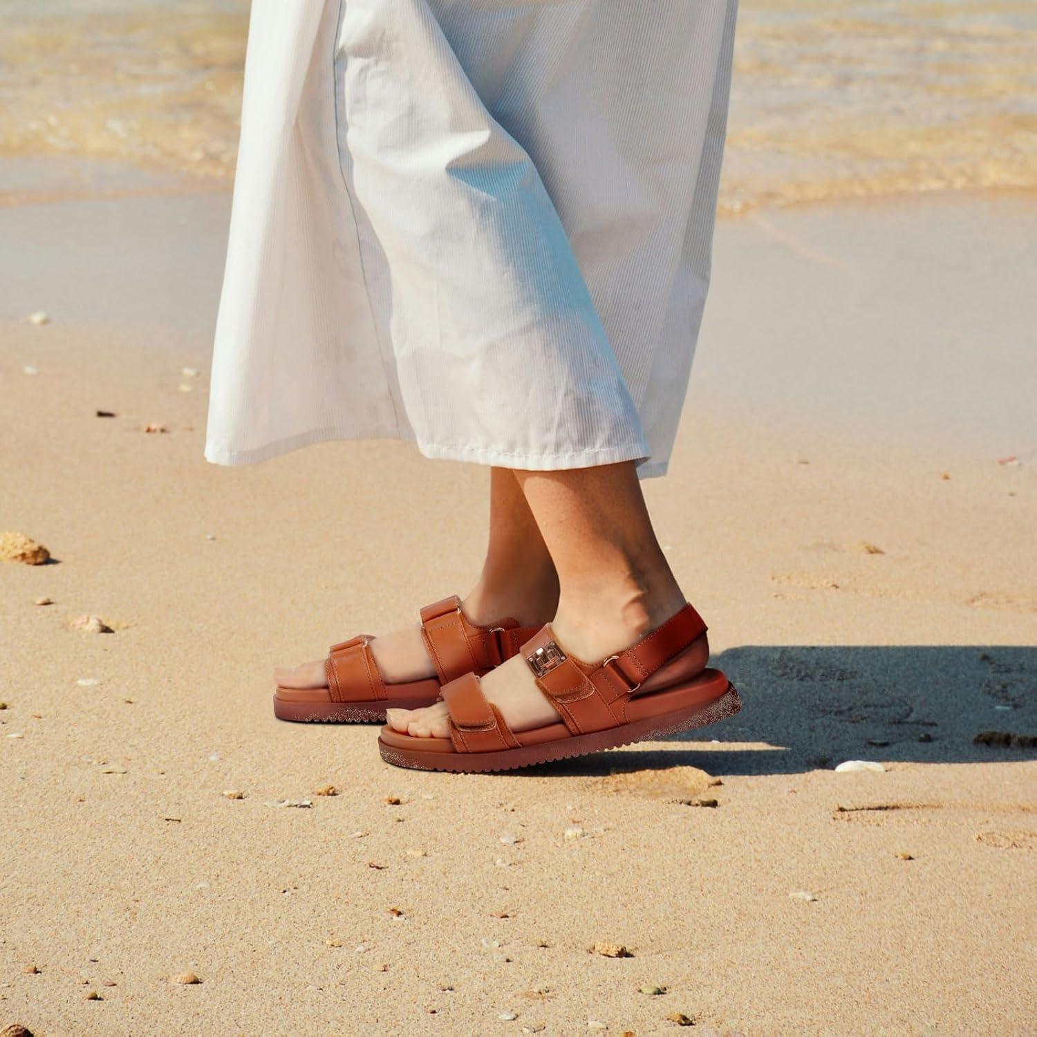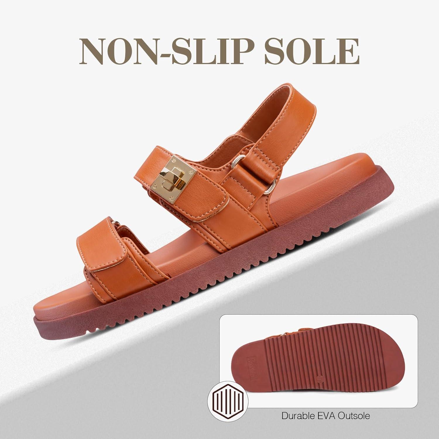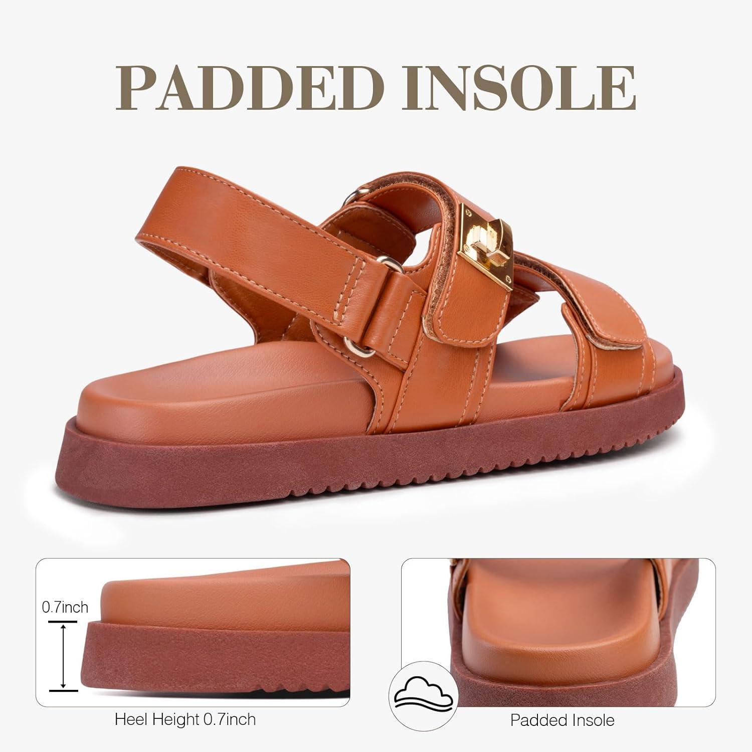 FITORY Women’s Flat Sandals Classic Adjustable Double Strap with Cushioned Footbed for Summer Size 6-11(Brown)