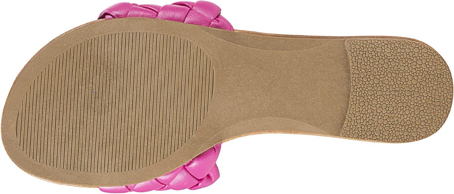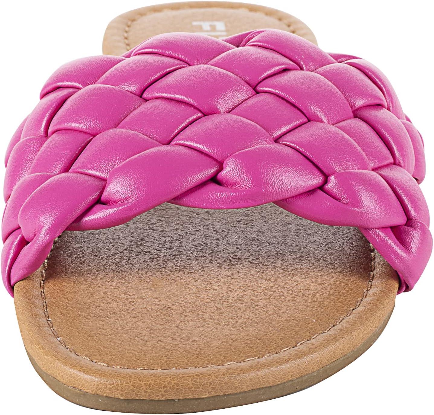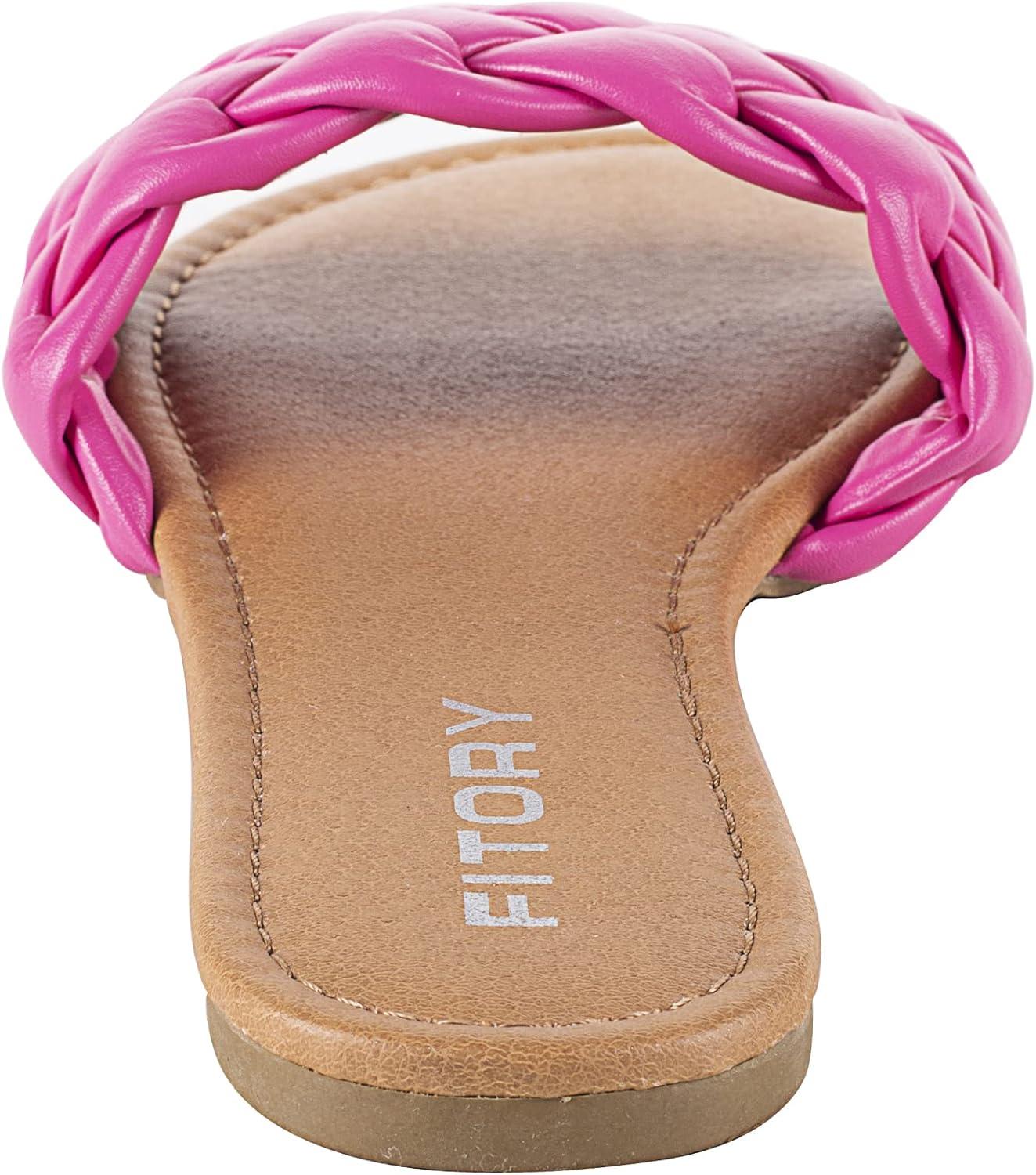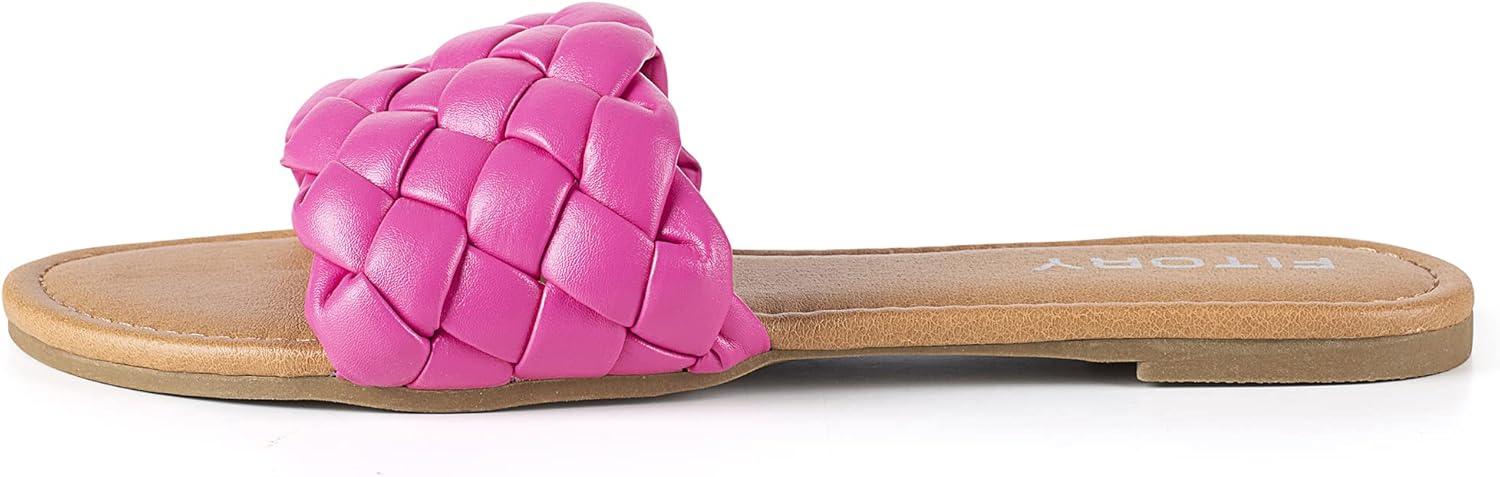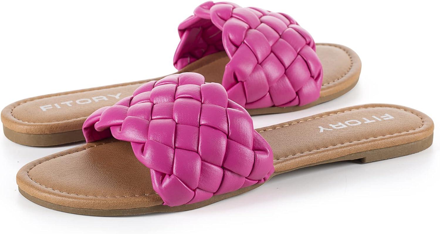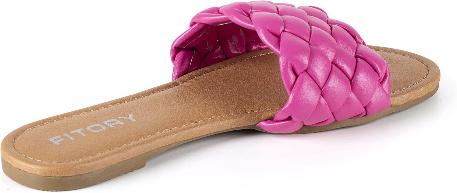 FITORY Womens Flat Sandals Fashion Round Open Toe Slip On Slides with Braided Strap Slippers for Summer Size 6-11(Hot Pink)