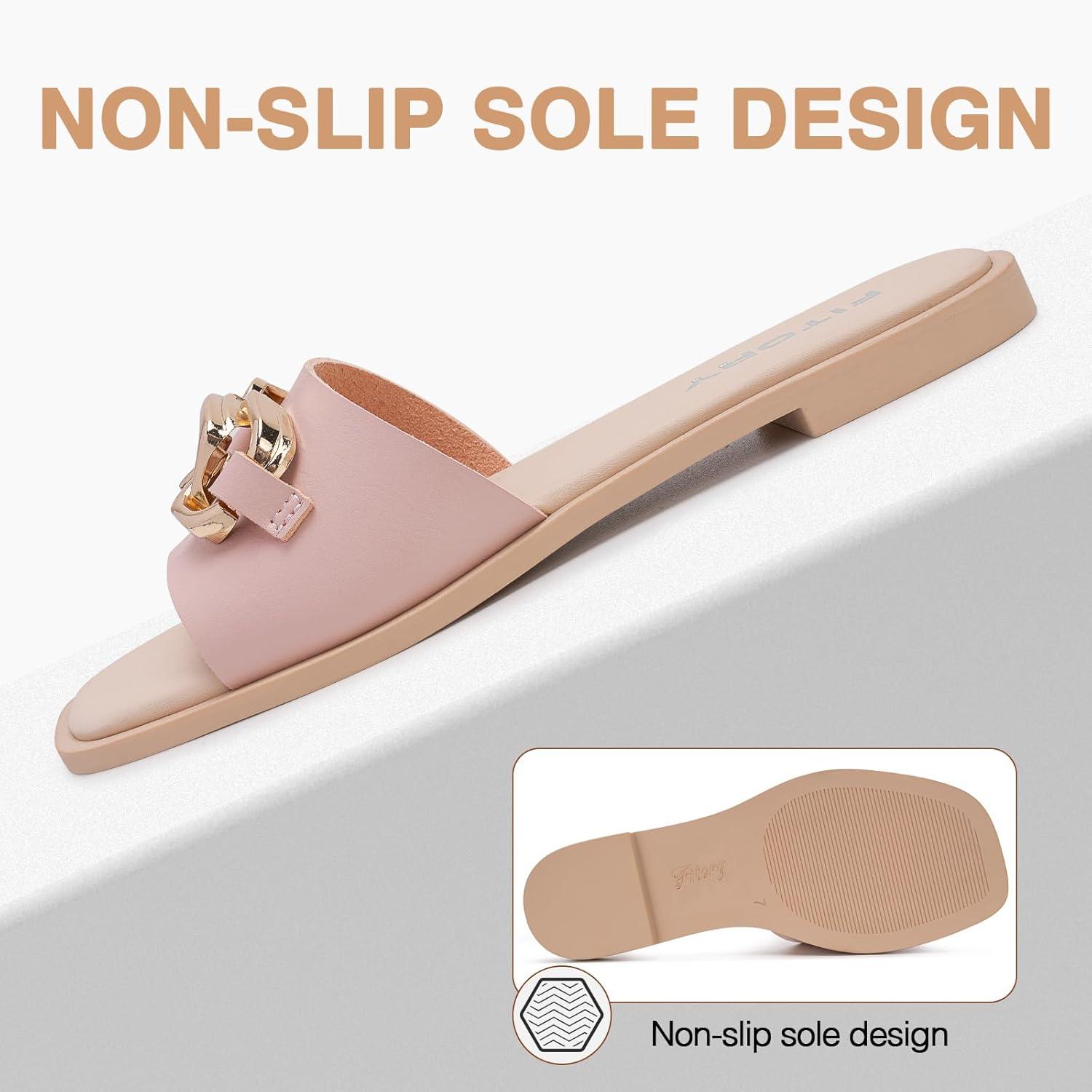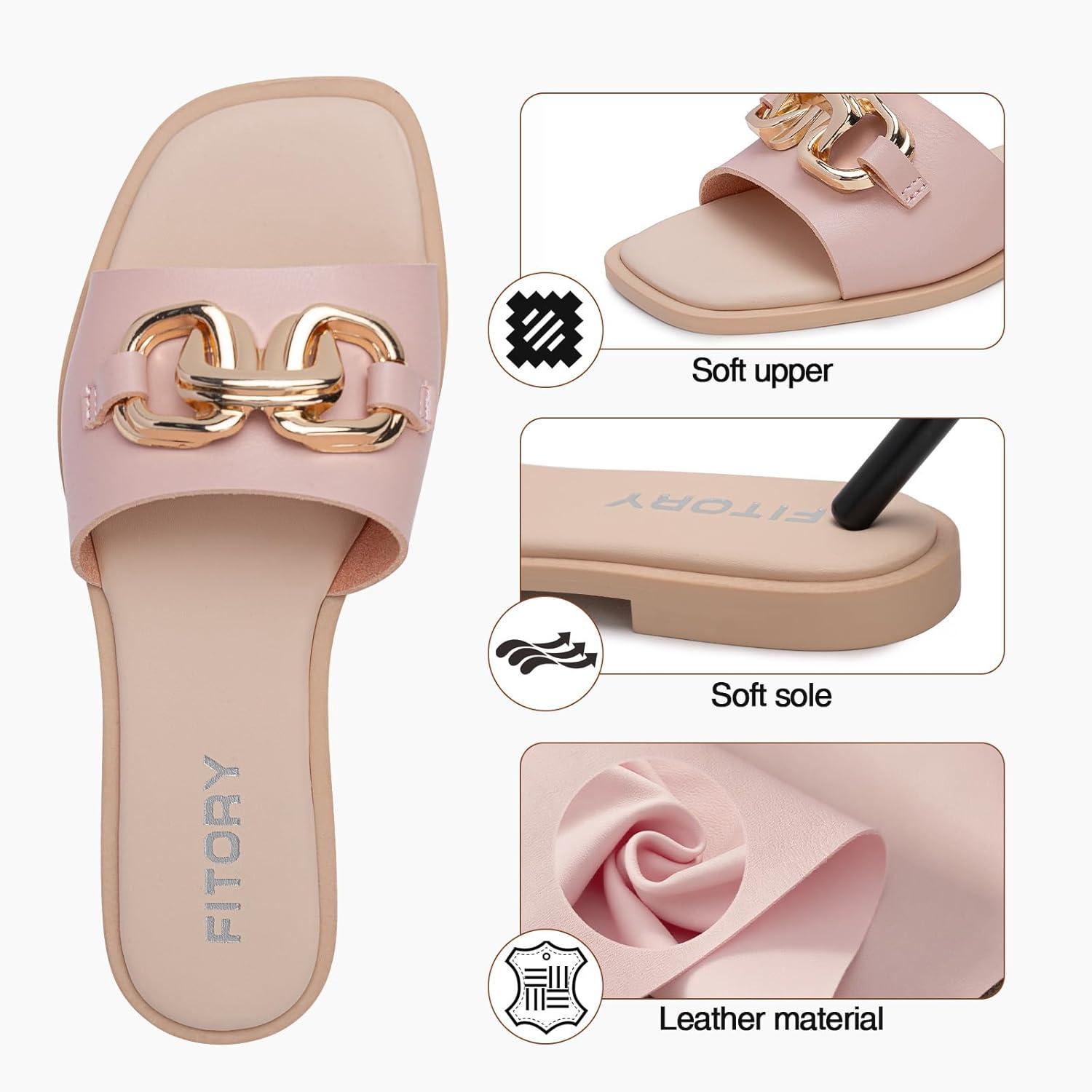 Be the first to review “FITORY Women’s Flat Sandals Fashion Slides With Soft Leather Slippers for Summer Size 6-11(Muted Pink)”