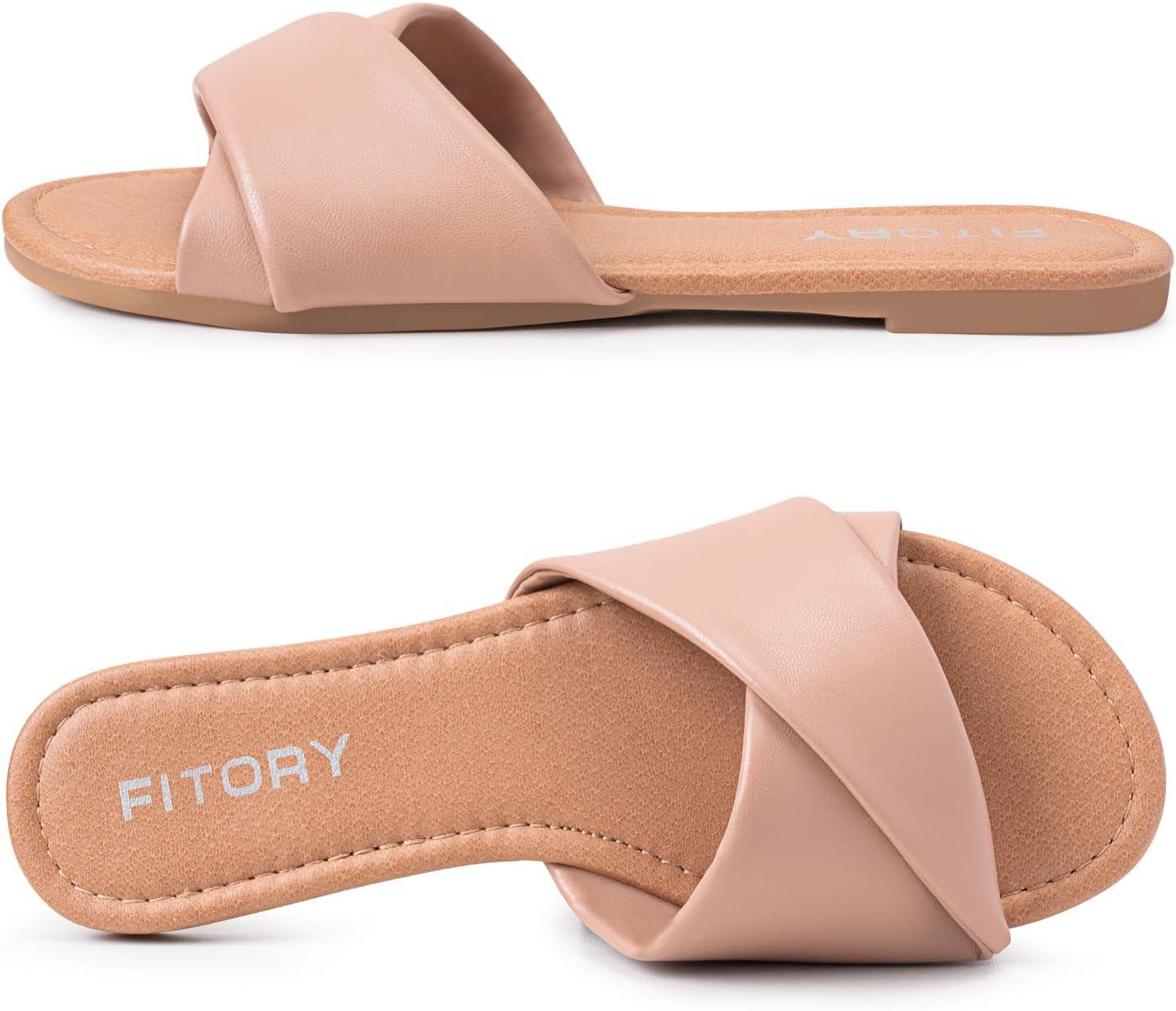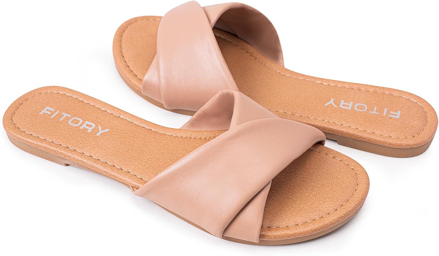 Get up to 60% off on FITORY Women’s Flat Sandals Fashion Slides With Soft Leather Slippers for Summer Size 6-11(Nude) styles during our winter sale event.