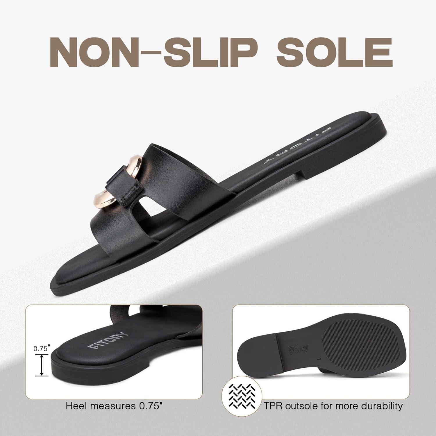 Be the first to review “FITORY Women’s Flat Sandals Fashion Square Open Toe Slides With Metal Chain Slippers for Summer Size 6-11(All Black)”