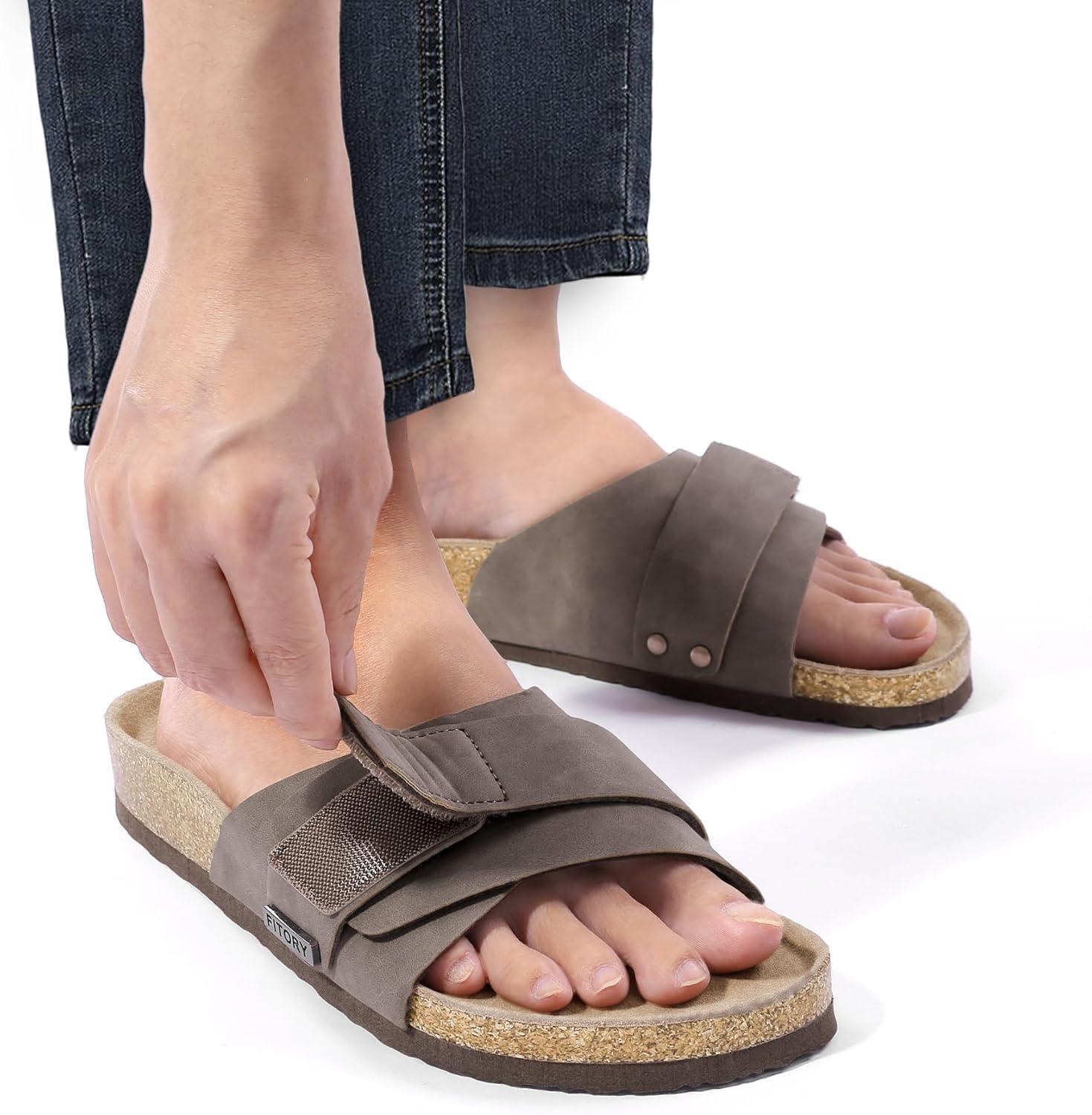 FITORY Womens Flat Sandals with Adjustable Straps Open Toe Slides Size 6-11