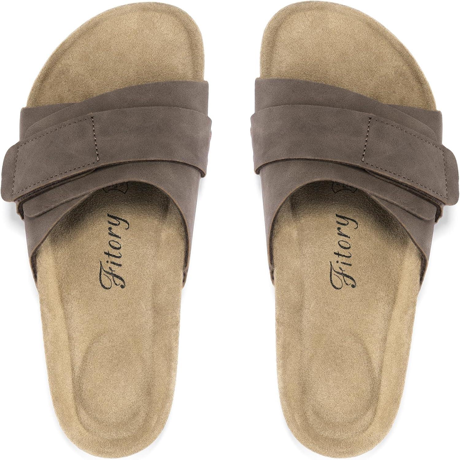 FITORY Womens Flat Sandals with Adjustable Straps Open Toe Slides Size 6-11(Brown)