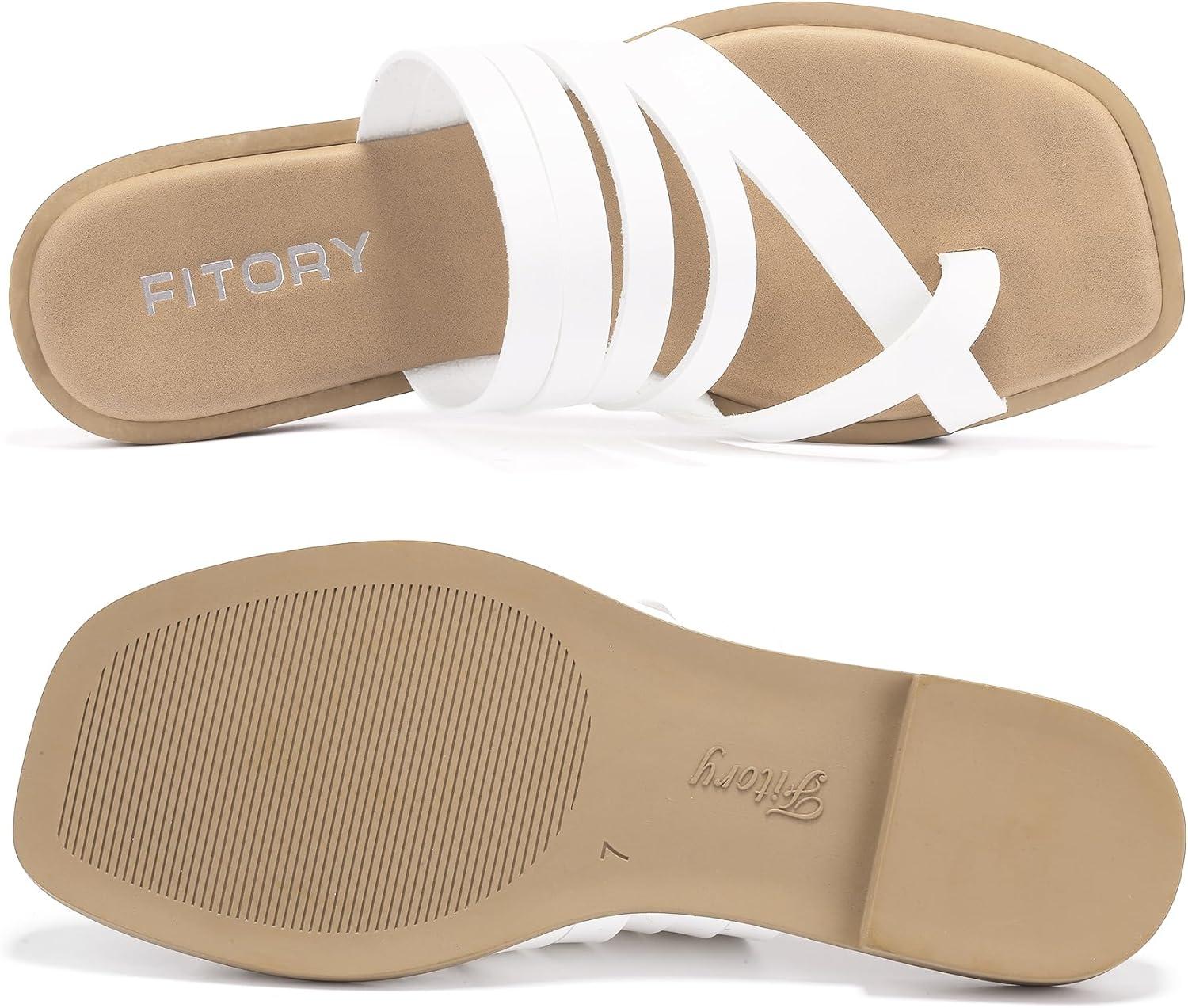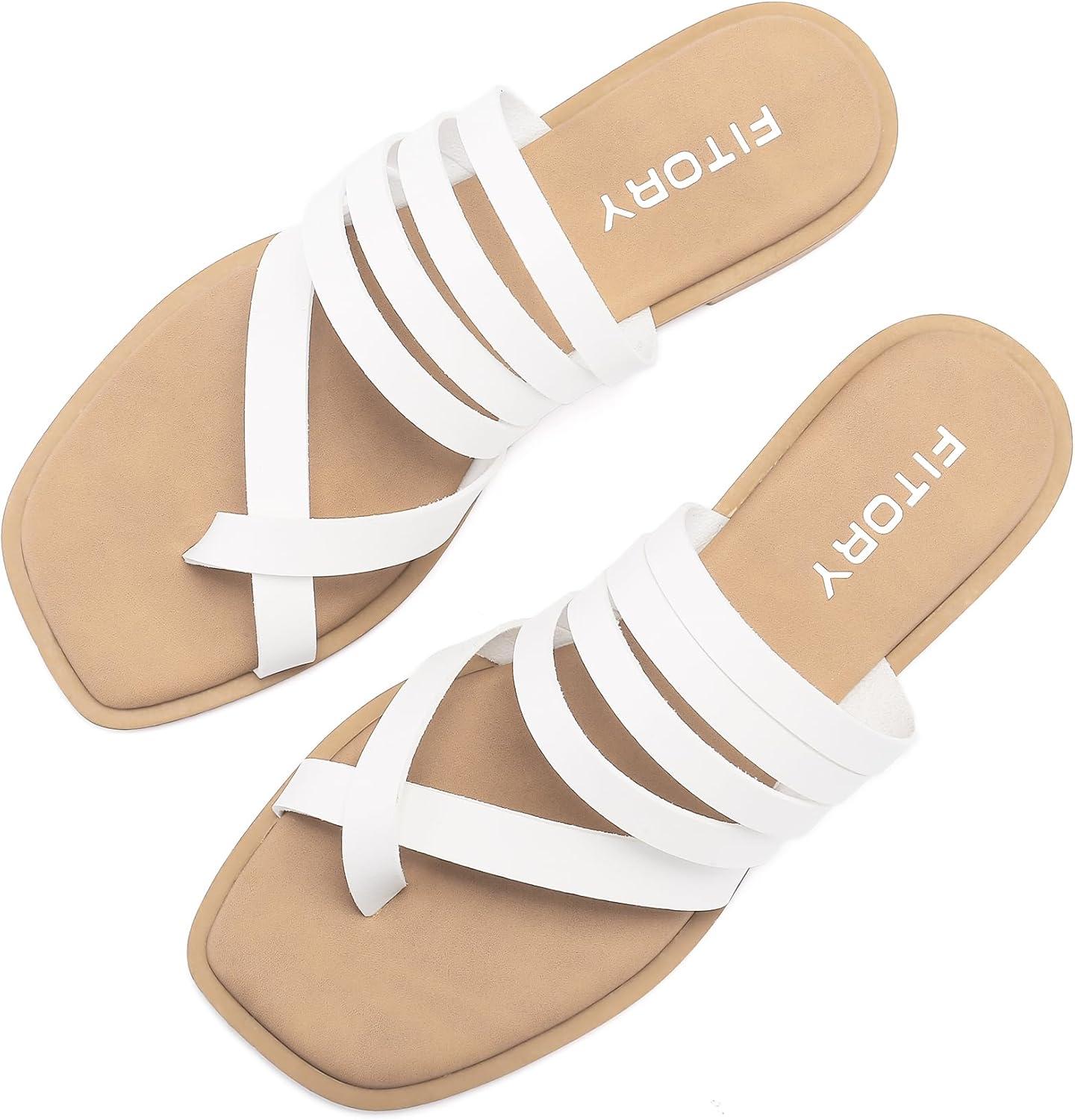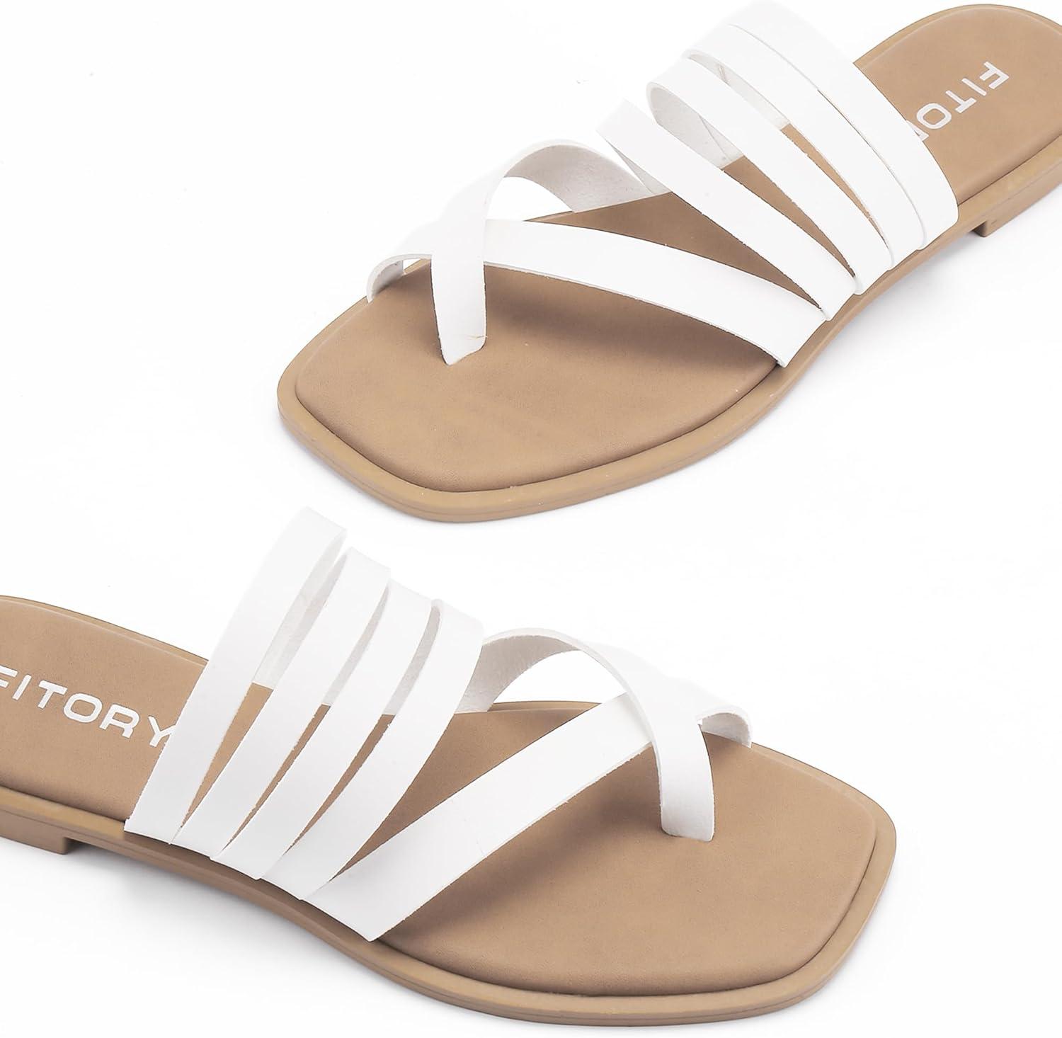 FITORY Womens Flat Straps Sandals With Casual Fashion Slides and Split Toes Style for Lady Summer Size 6-11(White)